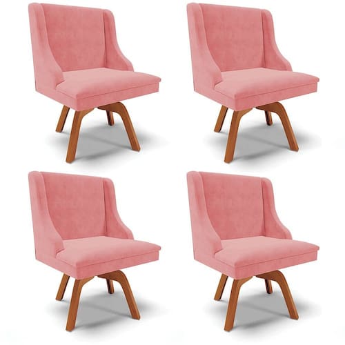 Para criar uma Sala de Jantar linda e confortável, basta escolher os móveis certos! Por isso, apresentamos o Kit 4 Cadeiras Estofadas Giratória para Sala de Jantar Lia Suede Rosê, da Ibiza, confira!