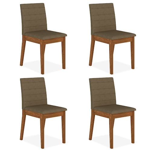 Detalhes Técnicos das Cadeiras: - Acabamento da Cadeira: Assento e Encosto Tapeçados - Almofada do Assento: Fixa - Cadeira Estofada: Sim - Peso Suportado da Cadeira: 90 KG - Facilidade da Montagem: Medial - Tonalidade da estrutura da Cadeira: Freijó - Tonalidade do Tecido: Suede Capuccino - Assento: D16 - Encosto: D14 - Tipo de Pintura: UV Texturizada - Material da Estrutura: MDF 25mm e 18mm - Medida da Cadeira: 92CM x 44CM x 50CM