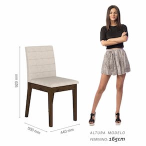 Detalhes Técnicos das Cadeiras: - Acabamento da Cadeira: Assento e Encosto Tapeçados - Almofada do Assento: Fixa - Cadeira Estofada: Sim - Peso Suportado da Cadeira: 90 KG - Facilidade da Montagem: Medial - Tonalidade da estrutura da Cadeira: Imbuia - Tonalidade do Tecido: Suede Bege - Assento: D16 - Encosto: D14 - Tipo de Pintura: UV Texturizada - Material da Estrutura: MDF 25mm e 18mm - Medida da Cadeira: 92CM x 44CM x 50CM