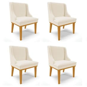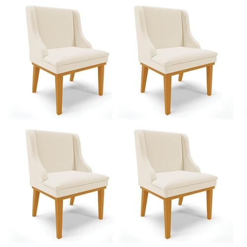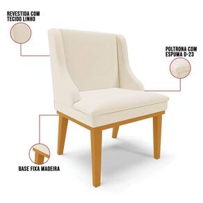 As cadeiras estofadas são essenciais para a sua casa, pois, além de agregar beleza na decoração do ambiente, são confortáveis, aconchegantes e resistentes. O Kit 4 Cadeiras Lia, foi projetado com um design exclusivo que facilita combiná-las com os outros móveis, deixando sua sala de jantar ainda mais bonita, as cadeiras são produzidas com materiais de alta qualidade, para que não se preocupe em desfrutar de bons momentos durante as refeições com sua família e amigos. Essa cadeira de jantar possui estrutura em Madeira Eucalipto de reflorestamento, ecologicamente correta e a base fixa de madeira suporta até 120 kg, sem impacto. A parte estofada é composta por espuma macia com densidade D-23 e o revestimento é em tecido Linho, que conta com propriedades térmicas, antialérgicas e toque agradável, por ser um tecido nobre transmite luxo, leveza e elegância.
