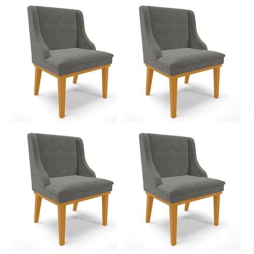 Tão importante quanto a mesa, as cadeiras são essenciais para compor um ambiente harmônico e funcional, então conheça o Kit 4 Cadeiras Estofadas para Sala de Jantar Base Fixa de Madeira Castanho Lia Suede Grafite, que a Ibiza desenvolveu para você!