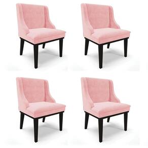 Pensando em renovar os móveis de casa? Vem conhecer o Kit 4 Cadeiras Estofadas para Sala de Jantar Base Fixa de Madeira Preto Lia Suede Rosa bebê, da Ibiza!