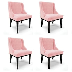 Pensando em renovar os móveis de casa? Vem conhecer o Kit 4 Cadeiras Estofadas para Sala de Jantar Base Fixa de Madeira Preto Lia Suede Rosa bebê, da Ibiza!