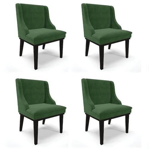 Pensando em renovar os móveis de casa? Vem conhecer o Kit 4 Cadeiras Estofadas para Sala de Jantar Base Fixa de Madeira Preto Lia Suede Verde, da Ibiza!