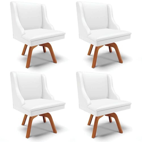 O Kit 4 Cadeiras Estofadas para Sala de Jantar Base Giratória de Madeira Lia Sintético Branco, da Ibiza, vai deixar sua casa muito mais especial, confira!