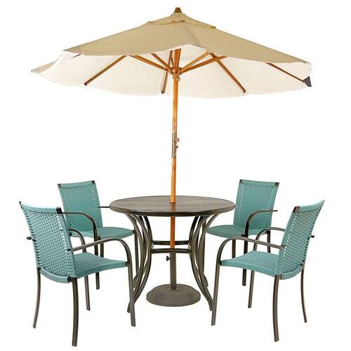 Kit 4 Cadeiras Ascoli Fibra Cor Azul Turquia Mesa Ripado Preta Com Central Bege - Ideal Jardim, Piscina