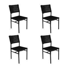 IMAGENS MERAMENTE ILUSTRATIVAS REALIZADO EDIÇÃO, PODENDO HAVER UMA PEQUENA VARIAÇÃO DE COR DEPENDENDO DE CADA TELA OU MONITOR.Kit 4 Cadeiras FranÃa Corda NÃutica Base em AlumÃnio Preto/preto