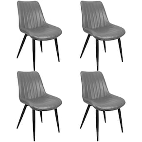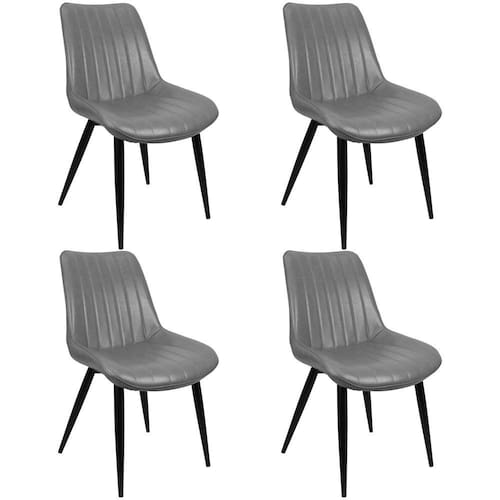 Kit 4 Cadeiras Haifa Livia Tábata Poltrona Estofada Pu Vintage Retro Pés Preto - Cinza