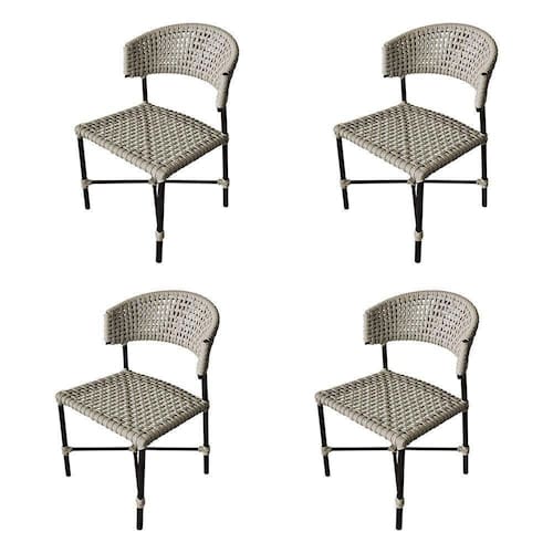 Kit 4 Cadeiras Hortz Corda Náutica Base Em Alumínio Preto/areia - Cor: Bege