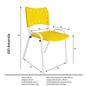 Kit 4 Cadeiras Iso Para Escola Escritório Comércio Amarela Base Branca