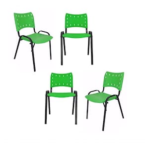 Kit 4 Cadeiras Iso Para Escola Escritório Comércio Verde Base Preta