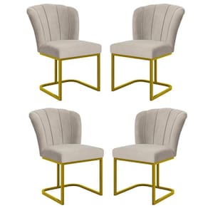 Kit 4 Cadeiras Jantar Flor Mesa Cozinha Reforçada Base Metal Dourada Cor:bege Bege