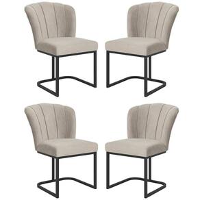 Kit 4 Cadeiras Jantar Flor Mesa Cozinha Reforçada Base Metal Preta Cor:bege Bege