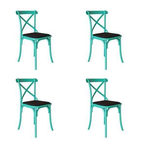 Kit 4 Cadeiras Katrina Assento Corano Preto Aço Azul Turquesa