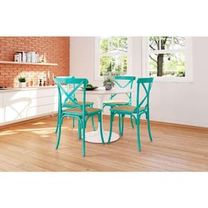 KIT 4 CADEIRAS KATRINA X AZUL TURQUESA ASSENTO BEGE NEW GREENA Cadeira Katrina é uma cadeira versátil e moderna, perfeita para várias ocasiões e ambientes. Desenvolvida em AçO e materiais de alto padrão, resistente e durável, ela possui estilo clássico e contemporâneo ao mesmo tempo, o que agrega mais conforto, beleza e sofisticação ao ambiente. Dimensões do Produto:Altura: 90cm Largura: 44cm Profundidade: 44cm Peso: 5,1kgKit 4 Cadeiras Katrina X Azul Turquesa Assento Bege AÃo New Green