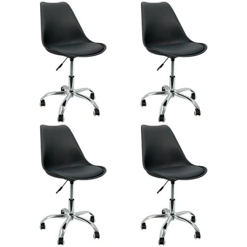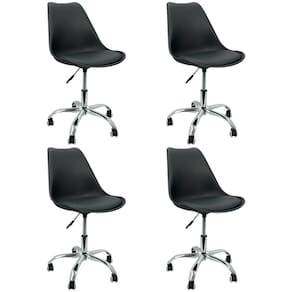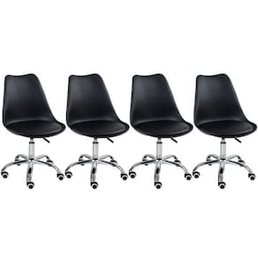 Kit 4 Cadeiras Leda Office Luisa Saarinen Estofada Base Giratória Cromada - Preta - Preto