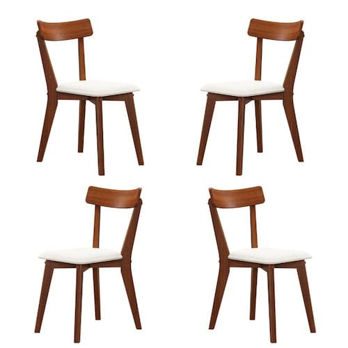 Seu assento estofado com espuma de ótima resistência e tecido de linho dão um toque final a esta peça única. Acabamento da Estrutura: Verniz Almofada do assento: Fixa Altura do assento até o chão: 46.0000 Ambiente Principal: Sala de Jantar codigo_ean: 7909903212400 Cor: Castanho Cor do Produto: Castanho Dobrável: Não Enchimento do Assento: Espuma D-28 Estrutura do Assento: Multilaminado Estrutura do Encosto: Multilaminado Giratória: Não Itens Inclusos: 4 Cadeiras, Kit Ferragens e Manual de Montagem Linha ou Coleção: Rafa Manual de Montagem e Instalação: https://product-hub-prd.madeiramadeira.com.br/818789/documents/53b7e220-6dda-4d75-9fa1-1532cf0ecb321125000naopossuimontagem.pdf Material da Base: Madeira Maciça Material Principal: Eucalipto Necessita Montagem: Não Origem do Produto: Nacional Peso: 6 kg Possui Apoio para Braços: Não Possui Apoio Para os Pés: Não Possui Rodízio: Não Quantidade de Itens: 4 Recomendações de Uso, Manutenção e Limpeza: Utilizar apenas pano umido Revestimento do Assento: Tecido de Linho Revestimento do Encosto: Madeira Tipo de Assento: Fixo Tipo de Encosto: Fixo Tipo de Madeira Maciça: Eucalipto undefined: 818783 Ean: 7909903212400