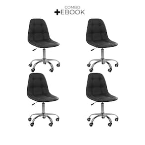Kit 4 Cadeiras Office Eiffel Botonê Oficial Preto - Preto