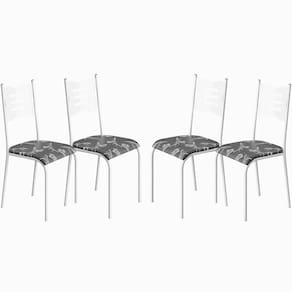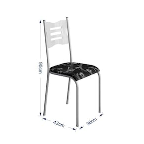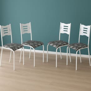 *Podem ocorrer variações de cores nos assentos das cadeiras em relação às fotos.* Acabamento: Brilhante Acabamento da Estrutura: Pintura Almofada do assento: Fixa Altura do assento até o chão: 44 cm Ambiente Principal: Cozinha codigo_ean: 7900288209740 Complexidade da Montagem: Baixa: pode ser montado por uma pessoa sozinha Cor: Branco/Preto Floral Cor do Produto: Branco/Preto Floral Cor dos Pés: Branco Dobrável: Não Escala de Brilho: Brilhante Estrutura do Encosto: Aço Giratória: Não Itens Inclusos: 4 Cadeiras e Kit Ferragens Manual de Montagem e Instalação: https://product-hub-prd.madeiramadeira.com.br/899226843/documents/4e01486f-c04f-4972-8a0e-811752297c8a3124762654817546608469974.pdf Marca: MBM DECOR Material dos Pés: Aço Material Principal: Aço Necessita Montagem: Sim Origem do Produto: Nacional Peso: 2,9 kg Possui Apoio para Braços: Não Possui Apoio Para os Pés: Não Possui Assento/Encosto Estofados: Possui Somente o Assento Estofado Possui Rodízio: Não Recomendações de Uso, Manutenção e Limpeza: Limpar com pano úmido. Uso recomendado para adultos e áreas internas. Sistema de Montagem: Já vai com todos parafusos necessários. Necessíta chave Philips. Tipo de Assento: Fixo Tipo de Encosto: Fixo Marca: Não Informado