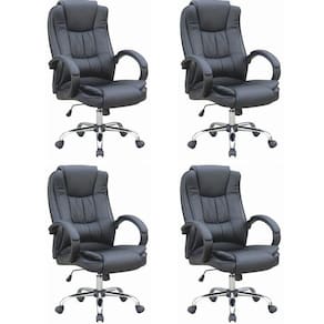 Possui gomos aliados a estrutura, o que remete ao encaixe perfeito do espaldar e garante a ergonomia do usuário. Altura do Conjunto: 110 cm Ambiente: null Ambiente Principal: Escritório Cor: Preto Informação Complementar: 4x Cadeira para Escritório Presidente Master Soft Preto Largura: 55 cm Altura: 110 cm Peso: 13 kg Profundidade: 55 cm Necessita Montagem: Sim