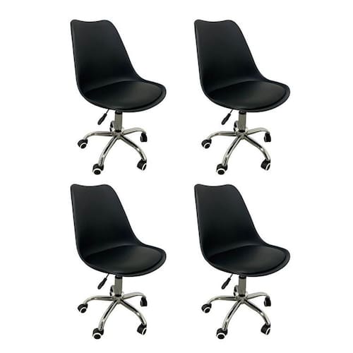 Kit 4 Cadeiras para Escritório Secretária Decorativa Eames Chicago Preto