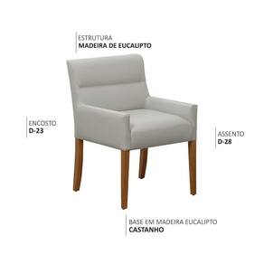 Projetada especialmente para salas de jantar, seu apoio baixo para os braços permite encaixe perfeito sob a mesa, garantindo mais mobilidade e aproveitamento de espaço. Além do conforto, o grande destaque está na sua construção robusta: madeira reflorestada de eucalipto, espumas de alta densidade e acabamento impecável