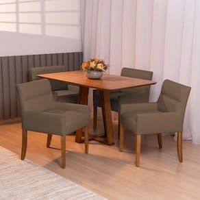 Projetada especialmente para salas de jantar, seu apoio baixo para os braços permite encaixe perfeito sob a mesa, garantindo mais mobilidade e aproveitamento de espaço. Além do conforto, o grande destaque está na sua construção robusta: madeira reflorestada de eucalipto, espumas de alta densidade e acabamento impecável