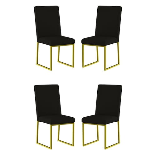 Você receberá 2 volumes, ou seja, quatro Cadeiras Estofadas para Mesa de Jantar com Base Industrial Dourado.