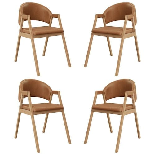 Desenho Do Tecido: Corino | Código Universal De Produto: Não aplica | Cor Do Assento: Não aplica | Estrutura: Madeira | Marca: B BALAQUI DECOR | Quantidade de Caixas Por Embalagem: 4 | Tipo de Produto: Cadeira de Jantar | Material: Madeira | Material De Estofamento: Corino | Tipo de Tecido: Corino | Tipo de Garantia: Garantia do Fabricante | Montagem: Montagem Completa | Tipo de Cadeira: Cadeira de Sala de Jantar | Móvel Dobrável: Não | Altura do Encosto da Cadeira: Encosto Médio | Duração da Garantia: 3 meses | Coleção de Antiguidade: Não | Altura do Banco: 43 CM | Cor Da Estrutura Da Cadeira: Caramelo | Material dos Pés: Madeira Cor: Marrom Claro