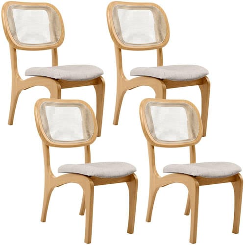 Procurando um modelo de cadeira de jantar que fuja do tradicional, mas que ao mesmo tempo combine elegância e modernidade?! Então, prepare-se para descobrir o Kit 04 Cadeiras Para Sala de Jantar Cozinha Estofada e Tela Mariah L02 Linho Cru, da Lyam Decor. Com design orgânico expresso nas linhas curvas, essa cadeira estofada, além de cumprir perfeitamente com sua funcionalidade, ao garantir conforto e bem-estar durante as refeições, vai também agregar charme e sofisticação à decoração seja da sua sala de jantar, da cozinha e até mesmo da sua área gourmet, já que detalhes como estrutura de Taeda maciça e encosto com tela harmonizam perfeitamente entre si, criando uma cadeira de madeira incrivelmente linda.