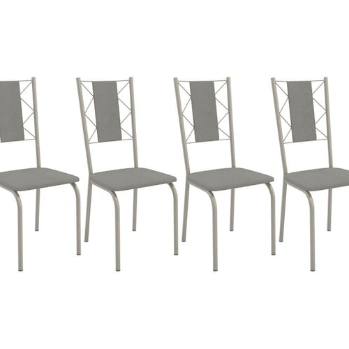 Para uma sala de jantar mais completa e com o máximo de conforto, aposte na Cadeira Lisboa da Kappesberg. Produzida em estrutura metálica pintada com tinta epóxi na cor níquel, ela é robusta e resistente, contando com estrutura tubular redonda, além de um design prático e versátil para todos os momentos do dia, desde o café até o jantar. Com medidas de 99cm de altura, sendo 46cm a altura do assento, 39cm de largura e 45cm de profundidade, ela suporta até 130kg, garantindo estabilidade e segurança em todos os seus momentos. E para mais comodidade, o assento é estofado e recoberto com tecido bouclé cinza. Já o encosto, com detalhe central estofado, possui acabamento reto e detalhes em aramado, proporcionando um diferencial único e muito conforto. Acabamento da Estrutura: Pintura Altura do assento até o chão: 46 cm Ambiente Principal: Sala de Jantar Complexidade da Montagem: Média: pode ser montado por mais de uma pessoa e/ou necessite de maior conhecimento para montagem Cor: Nickel/Cinza Cor do Produto: Nickel/Cinza Escala de Brilho: Fosco Estrutura do Assento: MDP Estrutura do Encosto: Metal/Almofada Itens Inclusos: 4 Cadeiras, Manual de Montagem e ferragens Linha ou Coleção: Crome epoxi Material Principal: Metal Necessita Montagem: Sim Origem do Produto: Nacional Peso: 19,6 kg Possui Rodízio: Não Recomendações de Uso, Manutenção e Limpeza: Limpeza diária somente com pano seco (flanela) ou pano branco e macio, pois o acúmulo de sujeira estimula o aparecimento de ferrugem. Evitar limpar com água, pois pode ocorrer o acúmulo de líquido em regiões especíicas da peça. Não utilizar produtos de limpeza que possuem cloro em sua formação. Encerar no mínimo uma vez por mês com cera automotiva. Em zona litorânea encerrar pelo menos 1 vez por semana. A maresia e a umidade são altamente prejudiciais ao revestimento. Não utilizar qualquer tipo abrasivo de limpeza. Não deixar as estruturas expostas ao ambiente externo como sacadas, patios...etc. Batidas na estrutura podem ocasionar riscos e desplacamento da camada de pintura. Revestimento do Encosto: Pintura Epoxi Sistema de Montagem: Parafuso Philips Tipo de Assento: Fixo Tipo de Encosto: Fixo