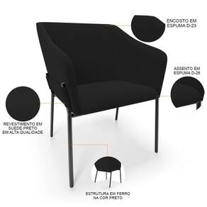 Cor do estofamento: Preto | ProductContents: 04 Cadeiras | ProductHeight: 79 cm | Cor da estrutura da cadeira: Peto | Profundidade do assento: 43 cm | Peso máximo suportado: 120 kg | OriginState: PR | Model: Olivia | Desenho do tecido: Liso | ProductInstructions: Produto para uso residencial em ambiente interno, não devendo ficar exposto diretamente ao sol, calo | Largura da cadeira: 62 cm | É cadeira de balanço: Não | Tempo de montagem: na | Espessura do assento: na | Material: Ferro, Espuma | SizeDescription: Altura: 79 cm x Largura: 62 cm x Profundidade: 60 cm | SupplierSimpleName: Kit 4 Cadeiras Para Sala de Jantar Estar Living Olívia L02 Suede Preto - Lyam Decor | Cor do assento: Preto | Largura do assento: 48 cm | MaterialFamily: Ferro, Espuma | Color: Preto | ProductLength: 60 cm | ProductWidth: 62 cm | Material do estofamento: Suede | OriginCountry: | Fabricante: Lyam Decor | ProductWeight: 24 kg | ProductWarranty: 90 dias após o do produto | Firmeza: Sim | Profundidade da cadeira: 60 cm | Altura da cadeira: 79 cm | É empilhável: Não | Cor: Preto | Altura do assento a partir do solo: NA | É dobrável: Não | Requer montagem: Não
