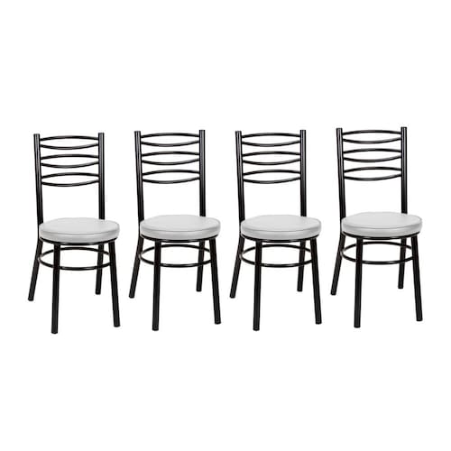 Já imaginou uma cadeira linda e confortável que agrega beleza à decoração e ainda faz com que as suas refeições sejam mais prazerosas? O Kit com 4 Cadeiras - Tre Paroni com acabamento em pintura epóxi é uma excelente opção para deixar a sua sala de jantar ou cozinha mais aconchegante e com um visual elegante, além de ter um assento extremamente confortável! Acabamento: Pintura Epóxi Acabamento da Estrutura: Pintura Almofada do assento: Fixa Altura do assento até o chão: 50 cm Altura dos Pés: 50 cm Altura Máxima dos Pés: 50.0000 Ambiente Principal: Sala de Jantar codigo_ean: 7898585967923 Complexidade da Montagem: Baixa: pode ser montado por uma pessoa sozinha Cor: Preto/Branco Cor do Produto: Preto/Branco Cor dos Pés: Preto Dimensões do assento: 39 cm Dobrável: Não Enchimento do Assento: Espuma D-23 Escala de Brilho: Brilhante Estrutura do Assento: Aglomerado Estrutura do Encosto: Aço Giratória: Não Informações Complementares: Conjunto de 4 Cadeiras Pintadas com Assento estofados na cor Branco. Itens Inclusos: 4 Cadeiras, Kit Ferragens e Manual de Montagem Linha ou Coleção: Debrum Manual de Montagem e Instalação: https://product-hub-prd.madeiramadeira.com.br/112927807/documents/90fa16f6-0874-4b8b-ad78-2a88c0e40b013145746492517555748546534.pdf Marca: TRE PARONI Material da Base: Aço Material dos Pés: Aço Material Principal: Aço Necessita Montagem: Sim Origem do Produto: Nacional Peso: 4,5 kg Possui Apoio para Braços: Não Possui Apoio Para os Pés: Não Possui Assento/Encosto Estofados: Possui Somente o Assento Estofado Possui Espaldar: Não Possui Rodízio: Não Quantidade de Itens: 4 Recomendações de Uso, Manutenção e Limpeza: Deve ser feita com pano macio e seco ou levemente umedecido com água e sabão neutro. Não devem ser utilizados abrasivos como palha de aço e objetos cortantes. Revestimento do Assento: Sintético Sistema de Montagem: Parafusos Tamanho do Produto: 89 cm x 42 cm x 46cm Tipo de Assento: Fixo Tipo de Encosto: Fixo