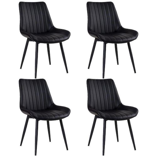 Kit 4 Cadeiras Poltrona Chicago Estofada Pu Vintage Retro Pés Preto - Preto Cadeira Poltrona Chicago Estofada Pu Vintage RetroA Cadeira Poltrona Chicago é um item versátil para diversos ambientes, pois alia modernidade e conforto à uma única peça. A cadeira possui um design diferenciado e considerado atemporal por ser de um estilo Urbano-Vintage, que adiciona personalidade e charme ao ambiente escolhido.É uma mobília sofisticada para compor diversos tipos de ambientes profissionais ou particulares.Ela se destaca pelo alto nível de conforto que oferece, considerando o seu custo-benefício e versatilidade de combinações, proporcionando economia, sofisticação e conforto. Seu desenho ergonômico garante uma postura adequada juntamente com o conforto de seu formato anatômico, características que se tornam uma ótima cadeira para ficar horas sentado seja trabalhando, desfrutando de um jantar ou até mesmo conversando com amigos em uma sala de estar. Por se tratar de uma cadeira moderna, a montagem, conservação e limpeza são muito fáceis e práticas. Especificações Técnicas do Produto: Material do assento: Couro PUMaterial dos pés: Aço pintadoAltura do encosto: 82 cmAltura do assento: 45 cmLargura do assento: 53 cmProfundidade do assento: 41 cmDistância entre os pés: 45 cmPeso suportado: 120 kgGarantia: 3 meses Marca: Magazine Roma