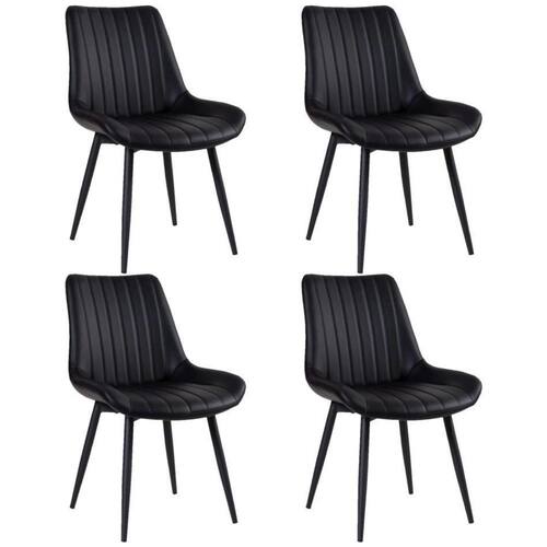 Kit 4 Cadeiras Poltrona Chicago Estofada Pu Vintage Retro Pés Preto - Preto Cadeira Poltrona Chicago Estofada Pu Vintage Retro A Cadeira Poltrona Chicago é um item versátil para diversos ambientes, pois alia modernidade e conforto à uma única peça. A cadeira possui um design diferenciado e considerado atemporal por ser de um estilo Urbano-Vintage, que adiciona personalidade e charme ao ambiente escolhido. É uma mobília sofisticada para compor diversos tipos de ambientes profissionais ou particulares. Ela se destaca pelo alto nível de conforto que oferece, considerando o seu custo-benefício e versatilidade de combinações, proporcionando economia, sofisticação e conforto. Seu desenho ergonômico garante uma postura adequada juntamente com o conforto de seu formato anatômico, características que se tornam uma ótima cadeira para ficar horas sentado seja trabalhando, desfrutando de um jantar ou até mesmo conversando com amigos em uma sala de estar. Por se tratar de uma cadeira moderna, a montagem, conservação e limpeza são muito fáceis e práticas. Especificações Técnicas do Produto: Material do assento: Couro PU Material dos pés: Aço pintado Altura do encosto: 82 cm Altura do assento: 45 cm Largura do assento: 53 cm Profundidade do assento: 41 cm Distância entre os pés: 45 cm Peso suportado: 120 kg : 3 meses Marca: Não Informado