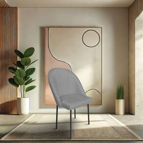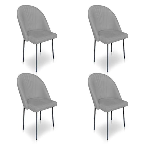Kit 4 Cadeiras Poltrona De Jantar Ariel Suede Grafite Pés De Ferro Preto - Pallazio