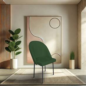 Kit 4 Cadeiras Poltrona de Jantar Ariel Suede Pés de Ferro Preto - Pallazio - Verde