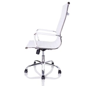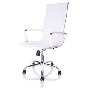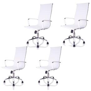 Kit com 4 Cadeiras Giratórias Charles Eames Esteirinha possui um misto de design e conforto, compondo um escritório super charmoso e confortável. O assento e o encosto em couro P.U. e os braços fixos (não possuem regulagem de altura) também são revestidos em PU garantindo maior durabilidade.