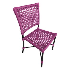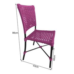 Kit 4 Cadeiras Roma Corda Náutica Base em Alumínio Preto/rosa