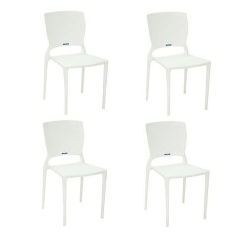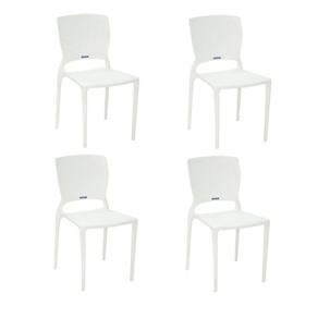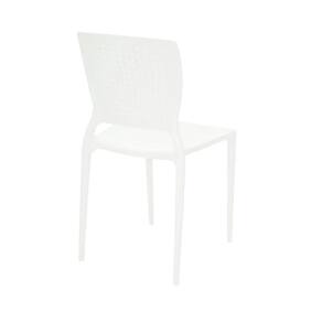 A Cadeira Safira Branca Tramontina é feita de polipropileno e fibra de vidro.