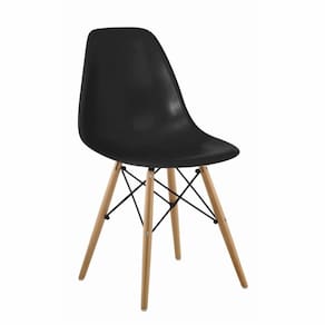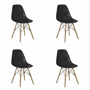 Cadeiras Eames na cor Preta com seu design inovador com alta aceitação no mercado sua concha ergonômica é produzida em PC (policarbonato) e conta com qualidade única, tendo firmeza e conforto em seu encosto. Seus pés são feitos em madeira e aço com peças antiderrapantes, proporcionando segurança e resistência. Muito mais que um item funcional.