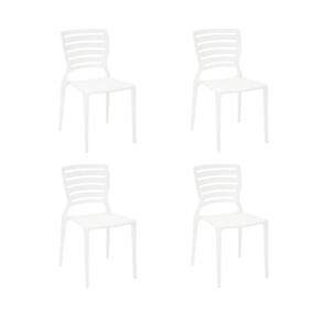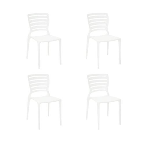 A Cadeira Sofia Branca Tramontina é feita de polipropileno e fibra de vidro.
