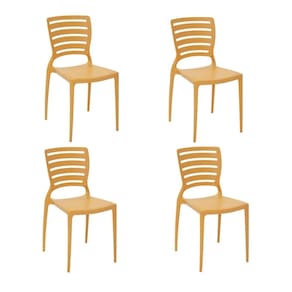 A Cadeira Sofia Laranja Tramontina é feita de polipropileno e fibra de vidro.