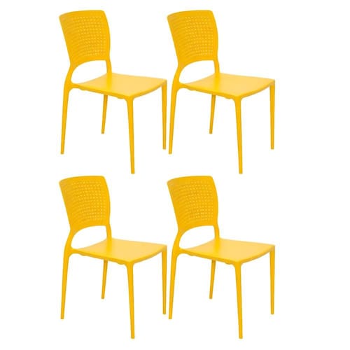 A linha de cadeiras Safira é uma irmã mais nova já conceituada linha Sofia. Nessa versão as cadeiras estão completas: robustas, bonitas e mais modernas. Para agradar a todos os públicos a linha Safira tem duas versões: Safira com braços e Safira sem braços. A Cadeira Tramontina Safira Amarela sem Braços em Polipropileno e Fibra de Vidro da linha Summa é leve, resistente e com design diferenciado. Para evitar acidentes, não se apoie nas duas pernas traseiras ou suba no acento. Submetida a rigorosos testes de qualidade, a cadeira resiste a uma carga estática de até 182 kg. Possui um ano de garantia.