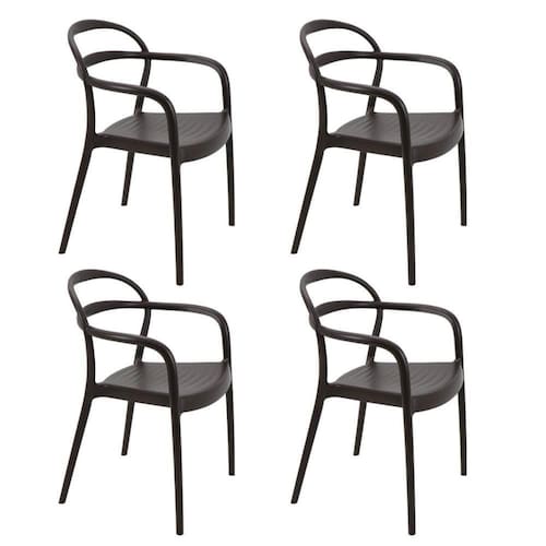 CONJUNTO COMPOSTO POR: 4 UN - CADEIRA TRAMONTINA SISSI EM POLIPROPILENO E FIBRA DE VIDRO COM BRAÇOS MARROM 92045109