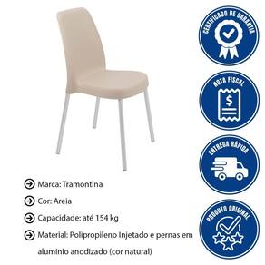 - Sua sala de jantar ficará muito mais bonita e cheia de estilo, com a cadeira Tramontina Vanda em polipropileno areia com pernas de alumínio.