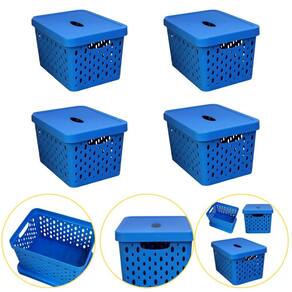 Kit 4 Caixa Cesto Organizador Multiuso Empilhável 17 L Azul