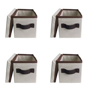 Largura: 14 cm Altura: 15 cm Profundidade: 28 cm Cor predominante: bege. Cor da borda: Marrom Puxador: alça ou ilhós Com tampa Material: TNT 80g, estrutura de Cadboard, e poliéster Peso: 237g