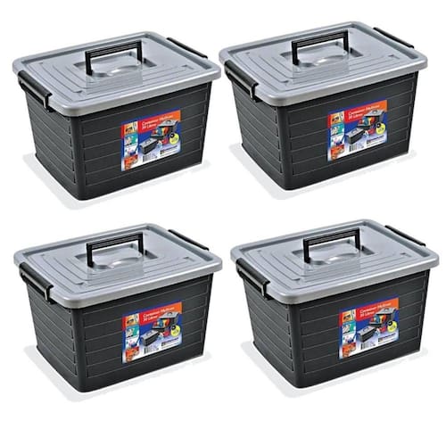 Kit 4 Caixas Organizadoras 35 Litros PRETA 25166 Arqplast Kit 4 Caixas Organizadoras 35L Com Rodinha Esta prática e funcional caixa organizadora mantém organizados, protegidos e bem armazenados todos os Itens que sejam necessários. Ajuda a organizar o ambiente e economiza espaço. Com travas laterais, alça para transporte e rodinhas embaixo, fica muito fácil locomover a caixa para diversos ambientes. Capacidade: 30 Litros Medidas em cm: CxLxA : 50x38x31