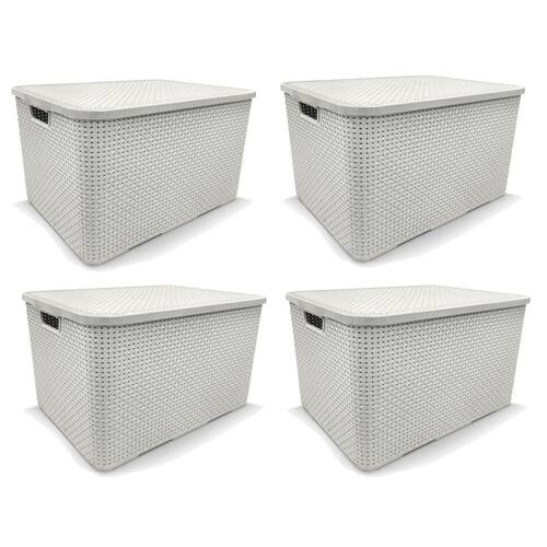 Kit 4 Caixas Organizadoras Rattan BRANCA 15 Litros Arqplast Kit 4 Caixas Organizadoras Rattan Branca 15 Litros ArqplastCaixa organizadora em plástico com tampa, que facilita a organização De guarda roupas e armários, por ser uma peça charmosa expor em Ambientes abertos dá um toque especial a decoração. Combina com vários ambientes, como cozinha, sala, banheiro e quarto. Material - Polipropileno DescriçãoDimensões:345 X 255 X 700mm Corpo 365 X 275 X 140mm Tampa comprimento x largura x altura medida do produtoDimensões: 345 X 260 X 180mm comprimento x largura x altura